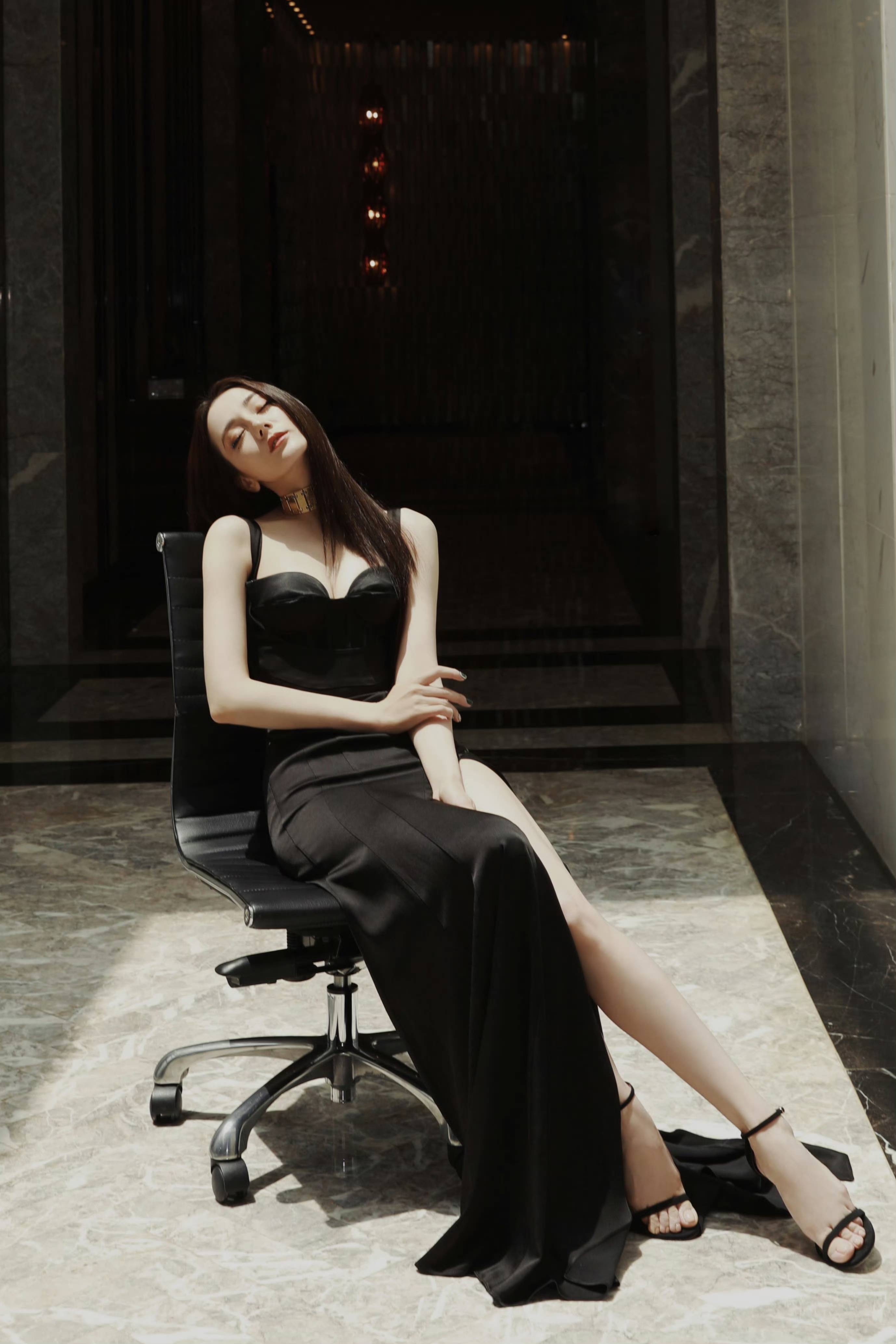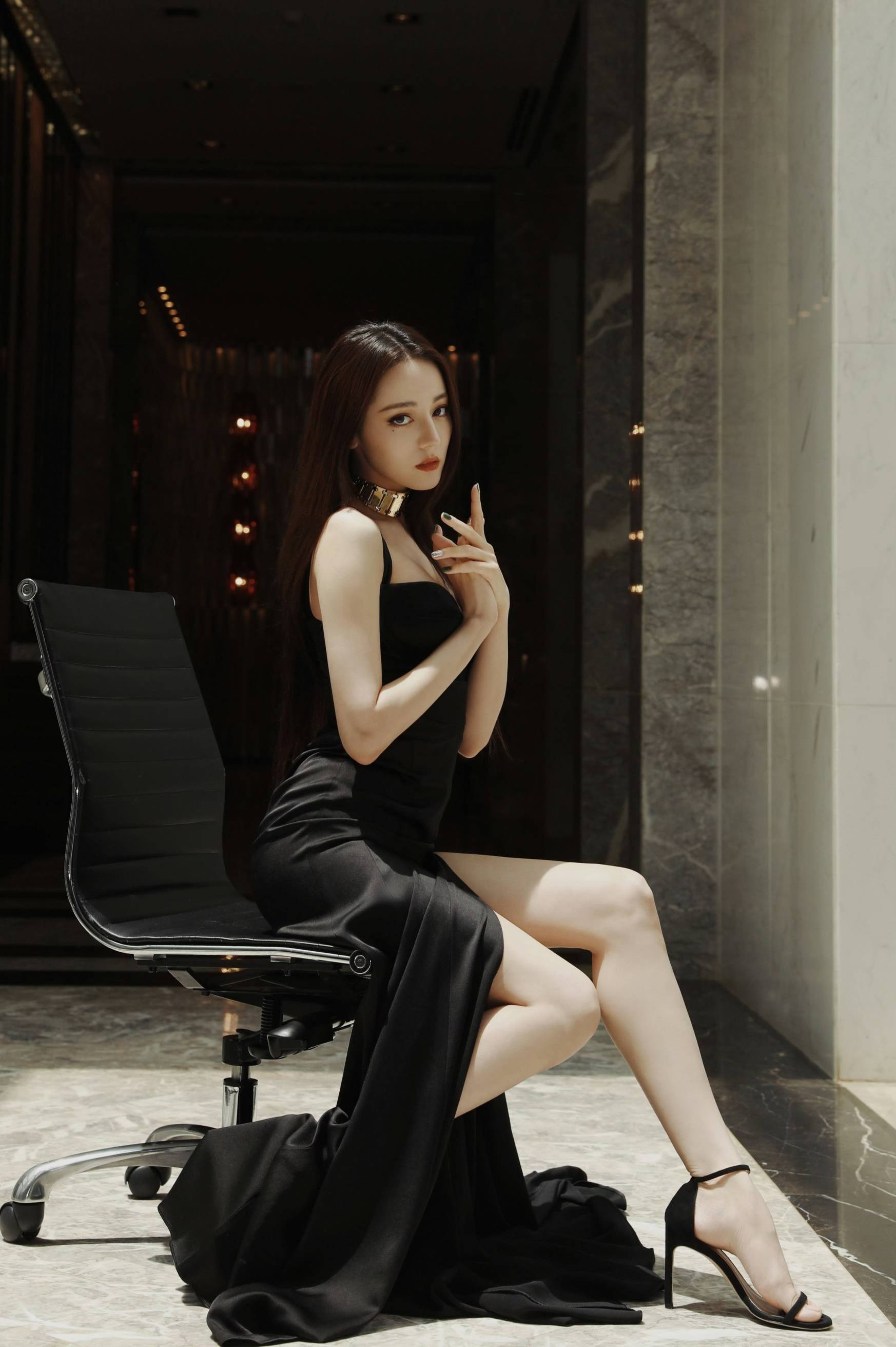 迪丽热巴穿黑色高开叉礼服化身“暗夜女王”,气场全开
